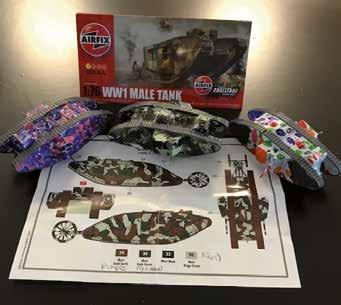 Our learning about the origins of WW1 continued with building an Airfix WW1 tank. We painted them in traditional camouflage but also as emblems for peace time.