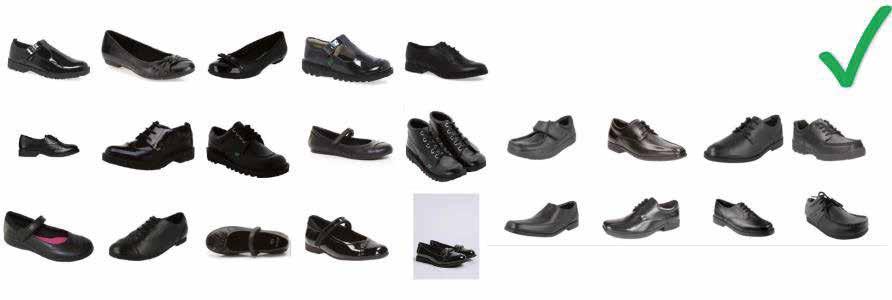 Sturdy black school shoes (not training shoes) (No white/coloured soles, no stripes, no piping, no logos, no boots, no backless shoes or sandals). A student wearing other footwear for medical reasons should provide a doctor’s note. WE REGRET THAT A LETTER FROM PARENTS IS NOT ACCEPTABLE. If a student is not in correct footwear then they will be expected to borrow some shoes from our stock in the standards room.