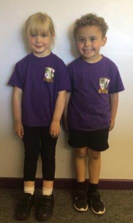 • P.E. Kits: Children wear their PE kit to school on their PE day. This is a purple PE t-shirt with the school logo, a purple hoodie with the school logo and black shorts, black jogging bottoms or leggings and black pumps or trainers.