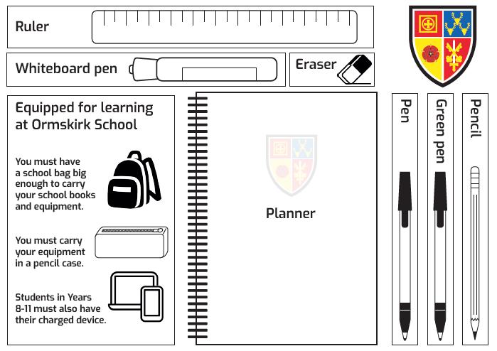 Students will be expected to lay out their equipment every morning during our daily ‘equipped for learning’ check using our equipment placemats.