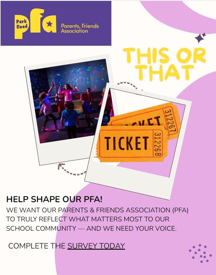 On the next few pages are some details from our PFA please do take a look as advance notice for dates and up and coming events. If you can, please spare a moment to share your ideas with them, via their survey.