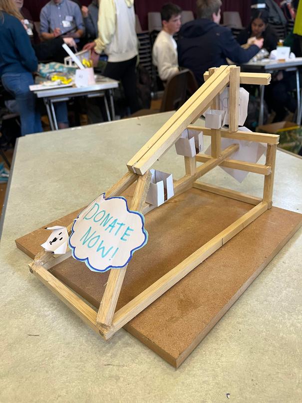 On the day, the students were tasked with designing and making a product to collect coin donations for a charity of their choice. The product needed to be able to collect and sort various coins In addition to the final prototype, the students had to put together a folder of work showing their design process, which was also judged.
