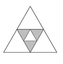 The diagram shows an equilateral triangle divided into four smaller equilateral triangles One of these triangles has itself been divided into gour smaller equilateral triangles.