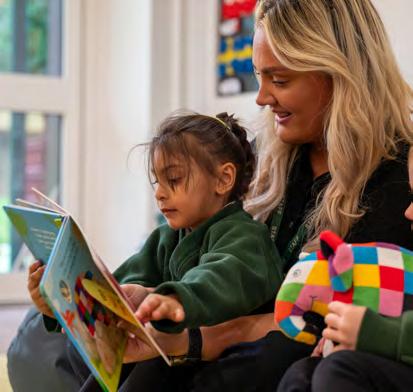 Children are provided with frequent and varied opportunities to engage with books and develop a love for reading. As part of our daily routine, they are read to at least twice a day, enjoying stories, rhymes, and poems that spark imagination and language development. In addition, we model effective reading strategies, demonstrating how to handle books, recognise print, and understand that text carries meaning. Through these experiences, we aim to build strong foundations for reading confidence and comprehension.