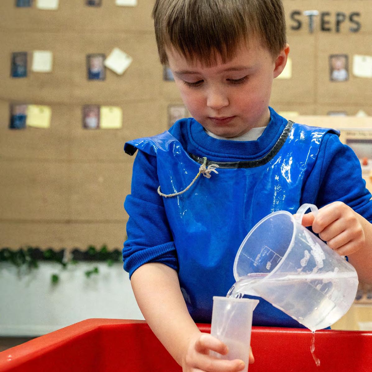 A space for exploring natural materials, magnets, light, water, sand and simple science concepts. Children observe, predict, test and question, developing early scientific thinking and curiosity about how things work.