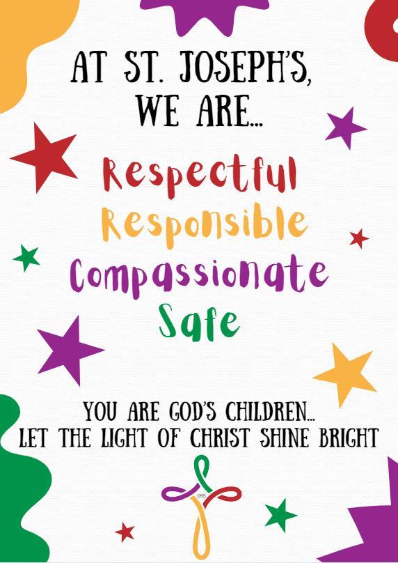 Through a curriculum focussed on equity, excellence, and meaningful opportunities, we equip our children with the virtues, values and skills for success at St. Joseph’s and beyond, empowering them to aspire high, pursue their dreams and go into the world to let the light of Christ shine from within them, so they are ready to stand shoulder to shoulder with others they meet.