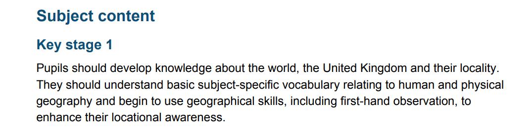 • This unit links the everyday experience of buying and eating food within the UK with the children’s growing geographical understanding of the world. As with many units in KS1, there is a strong element of local area study, with a suggested local shop, market or farm as a recommended visit. This will begin to show the class the connections between what we buy, where it comes from locally and how it might be able to be sourced from the UK (and beyond)