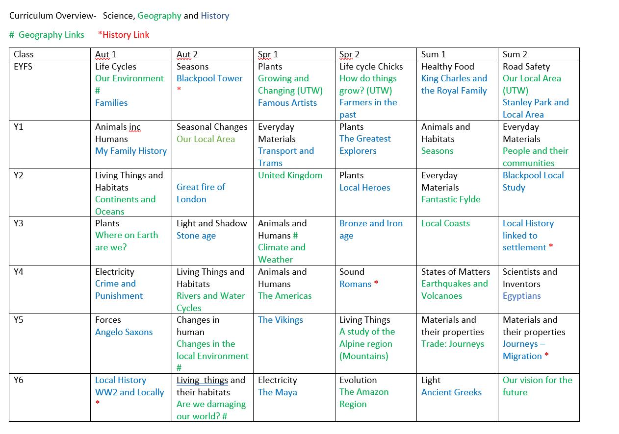 Children have opportunities to develop their geographical skills at home through half-termly topic homeworks which are set in each class. Effective CPD and standardisation opportunities are available to staff to ensure high levels of confidence and knowledge are maintained. Effective use of educational visits and visitors are planned, to enrich and enhance the pupil’s learning experiences within the Geography curriculum. Topic and theme days are built in at least termly to ensure that relevant links are made to world events and current foci impacting on the children’s lives. Teachers use highly effective Assessment for Learning at different points in each lesson to ensure misconceptions are highlighted and addressed. Effective modelling by teachers ensures that children are able to achieve their learning intention, with misconceptions addressed within it. Children are assessed against the taught objectives termly and are assessed as working above, at or below.