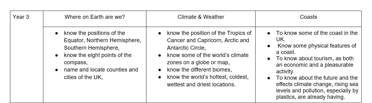 • Further Geography fieldtrips to take place across each year group (as the last time fieldtrips were assessed it was Covid times). Ensure each class has a fieldwork opportunity throughout the year.
