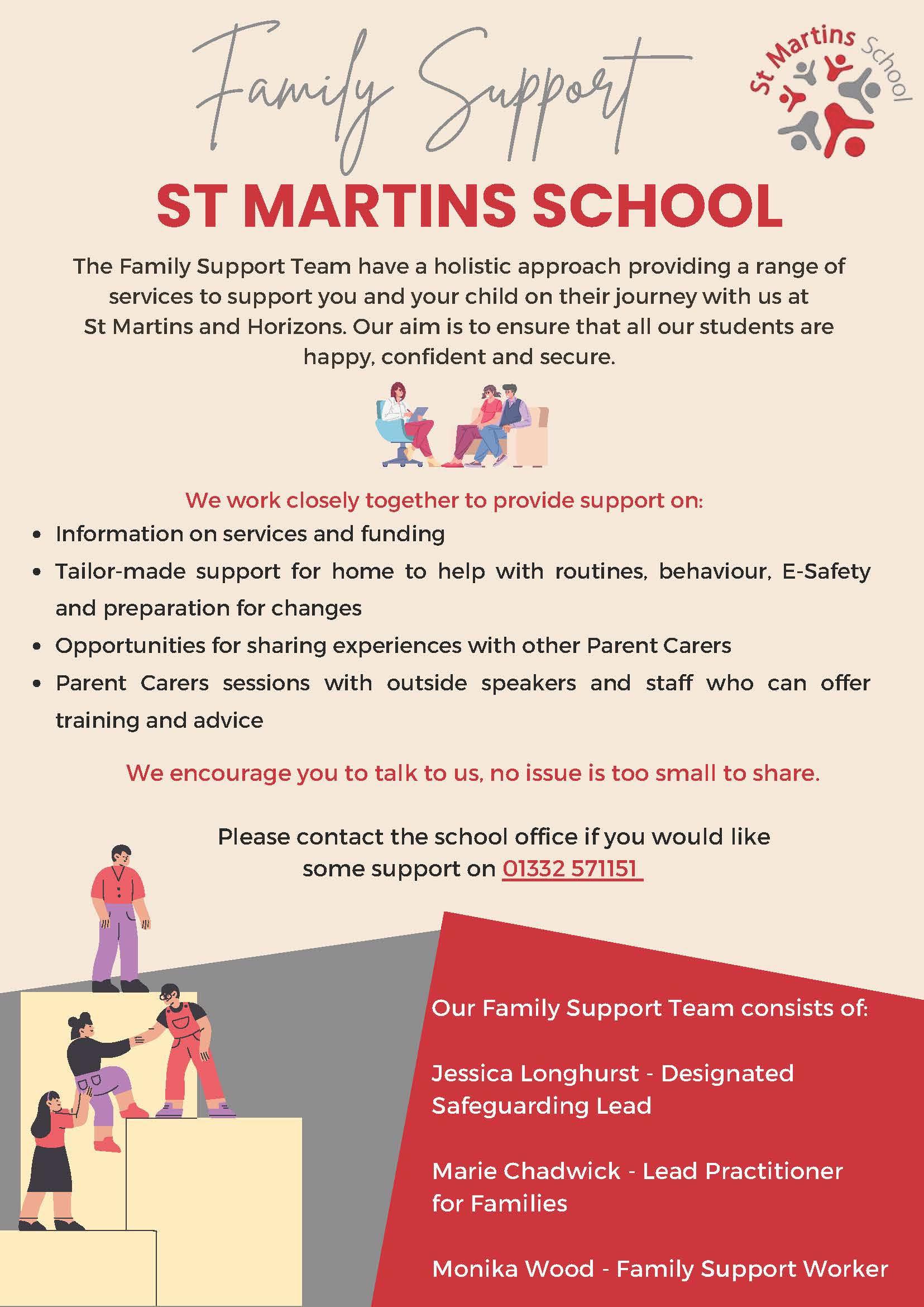 At St Martins School, we believe in working closely with families to provide holistic support – this work is facilitated by our incredible Family Support Team. The team –Jess, Marie and Monika have put together a flyer to share information on what they are able to offer – this is further in the update.