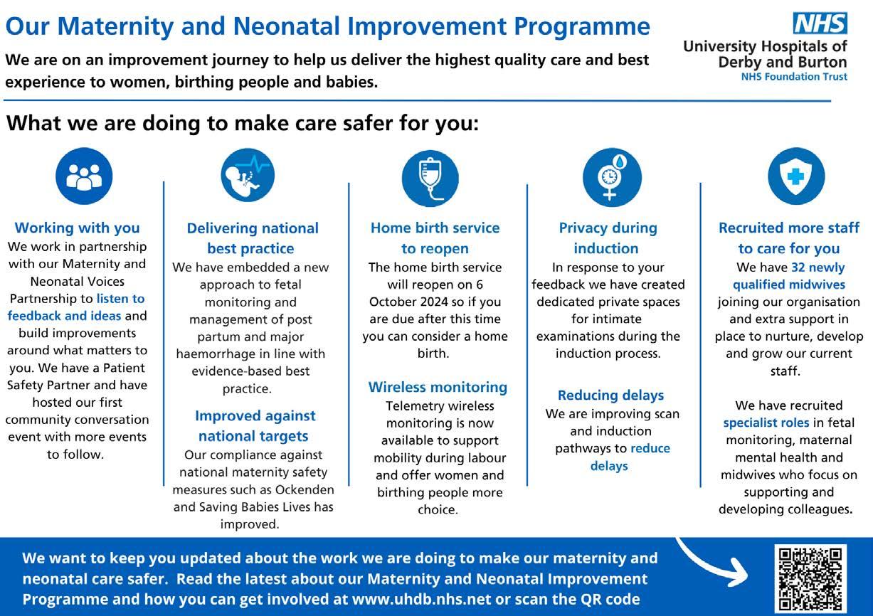 Sessions are delivered for Derby City families only by a Health Visitor. Topics include: infant feeding choices; safe sleep practices; emotional wellbeing and attachment to your new baby; practical aspects of preparing for your baby; baby brain development; and healthy life choices through pregnancy and beyond. All pregnant individuals are welcome along with their partner/significant other. To book, please scan the QR Code, go to Eventbrite and search for ‘Preparation for Parenthood’ in Derby, or text chathealth on 07507 327754.
