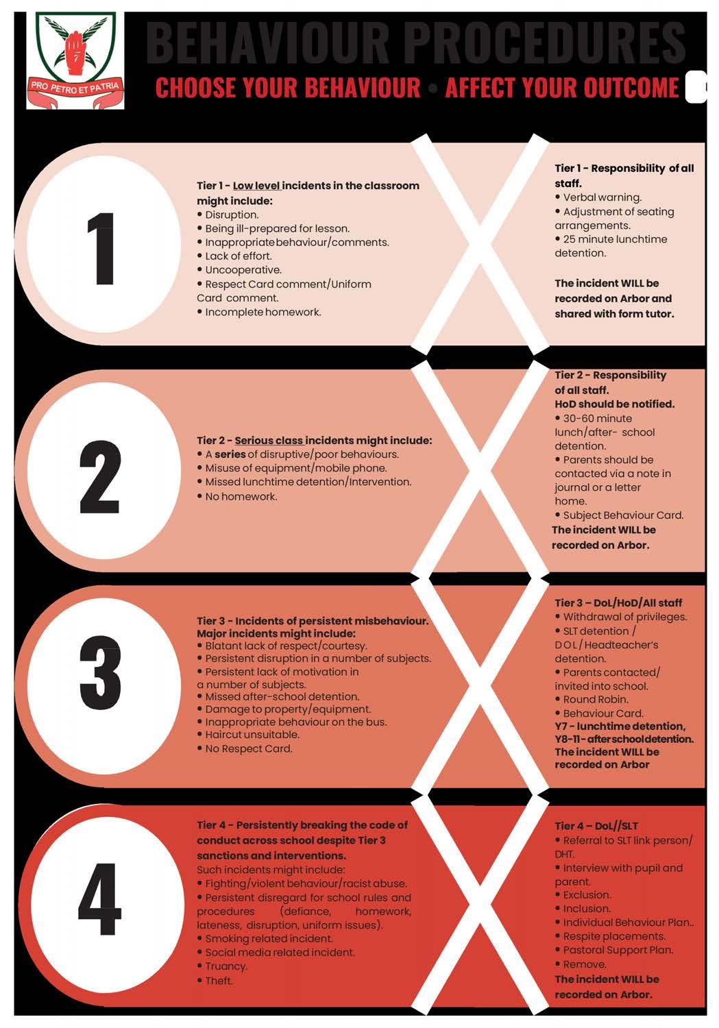 In order to meet the required standard, pupils are expected to wear our school uniform correctly, e.g. shirt tucked in, top button fastened, tie correctly worn and blazer sleeves rolled down.