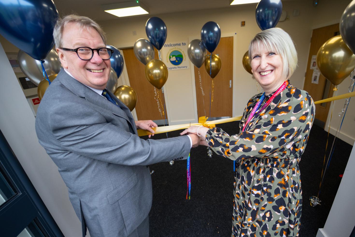 Wistaston Church Lane Academy recently officially opened its newly built nursery Cygnets The new building was opened by Headteacher Cathy Elsley and Chair of our Trustees David Wootton CBE