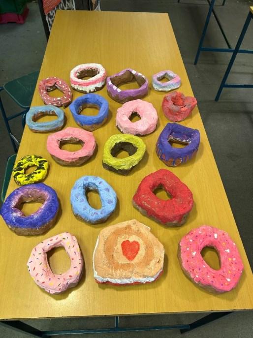 This summer term a fantastic group of Year 7 and 8 artists have been making and creating 3D doughnuts in our after-school art club. Students have used rolled up newspaper and modrock to create these 3D doughnuts then added paint to create the dough and colourful icing and sprinkles. Students have shown confidence, enthusiasm and kindness to all at art club. All members have made new friends and learnt new skills. Miss Dipple and Miss Cross want to thank every art club member for their positive attitudes and for creating a space where all are welcome. Thank you, art club! See you next year!