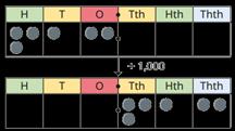 • Divide numbers by 10, 100 and 1,000 giving answers up to three decimal places.