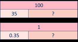 To find of … , I need to divide by … and multiply by … If 1 is … , then the whole is … × …