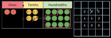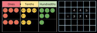 • Find the effect of dividing a one- or two-digit number by 10 and 100, identifying the value of the digits in the answer as ones, tenths and hundredths.