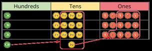 There are … groups of … hundreds/tens/ones/ in … I can exchange 1 … for 10 …