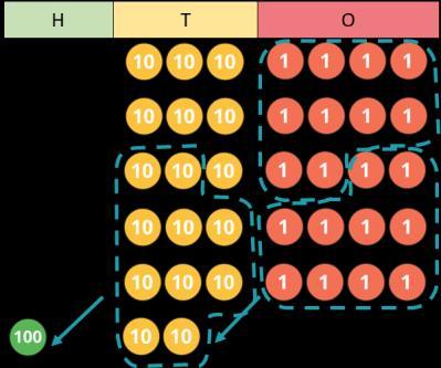 • Add 1s, 10s and 100s to a 3-digit number