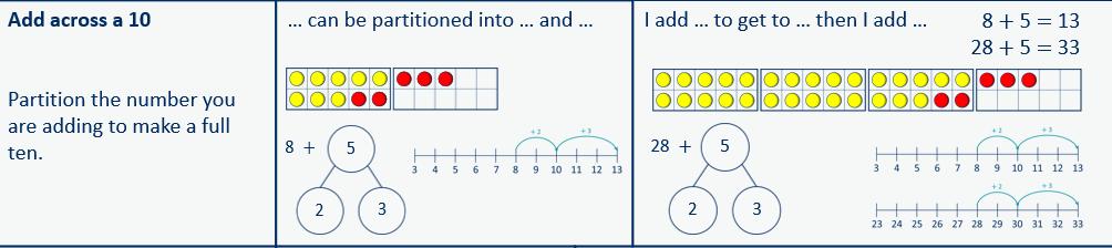 • Add two numbers across a 10 or 100