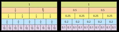 • Recognise, find and write fractions of a discrete set of objects: unit fractions and nonunit fractions with small denominators.