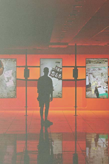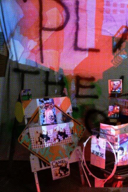 It is set against the vibrant cultural tapestry of SouthWest Asia and North Africa. Each facet of this installation symbolically bridges storytelling through digital animations with sculptures made from upcycled material and found objects.