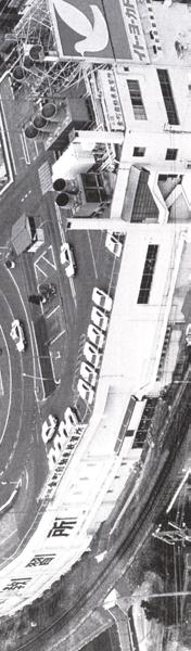 order in this landscape is not obvious. systematic in contrast with the signs of persuasion that shout their gorgeous cacophony but hide their constraining order. parts of the Strip that are incidentally but abundantly lit by signs, but their consistency of form and position and their arching of the highway, and the constant rhythm contrasts effectively with the uneven rhythms of the signs behind (Fig. 35). This types of order on the Strip: the obvious visual order of street elements and the difficult visual order of buildings and signs. changeable and disposable environmental decoration, known as advertising art. The messages are different now, but despite architecture is no longer simply the "skillful, accurate, and magnificent play of masses seen in light." The Strip by day, is a different the buildings are visible but remain secondary to the signs in visual impact and symbolic content. The space of urban sprawl Rather, it is open and indeterminate, identified by points in space and patterns on the ground; these are two-dimensional or space, complex configurations that are graphic or represent- national.