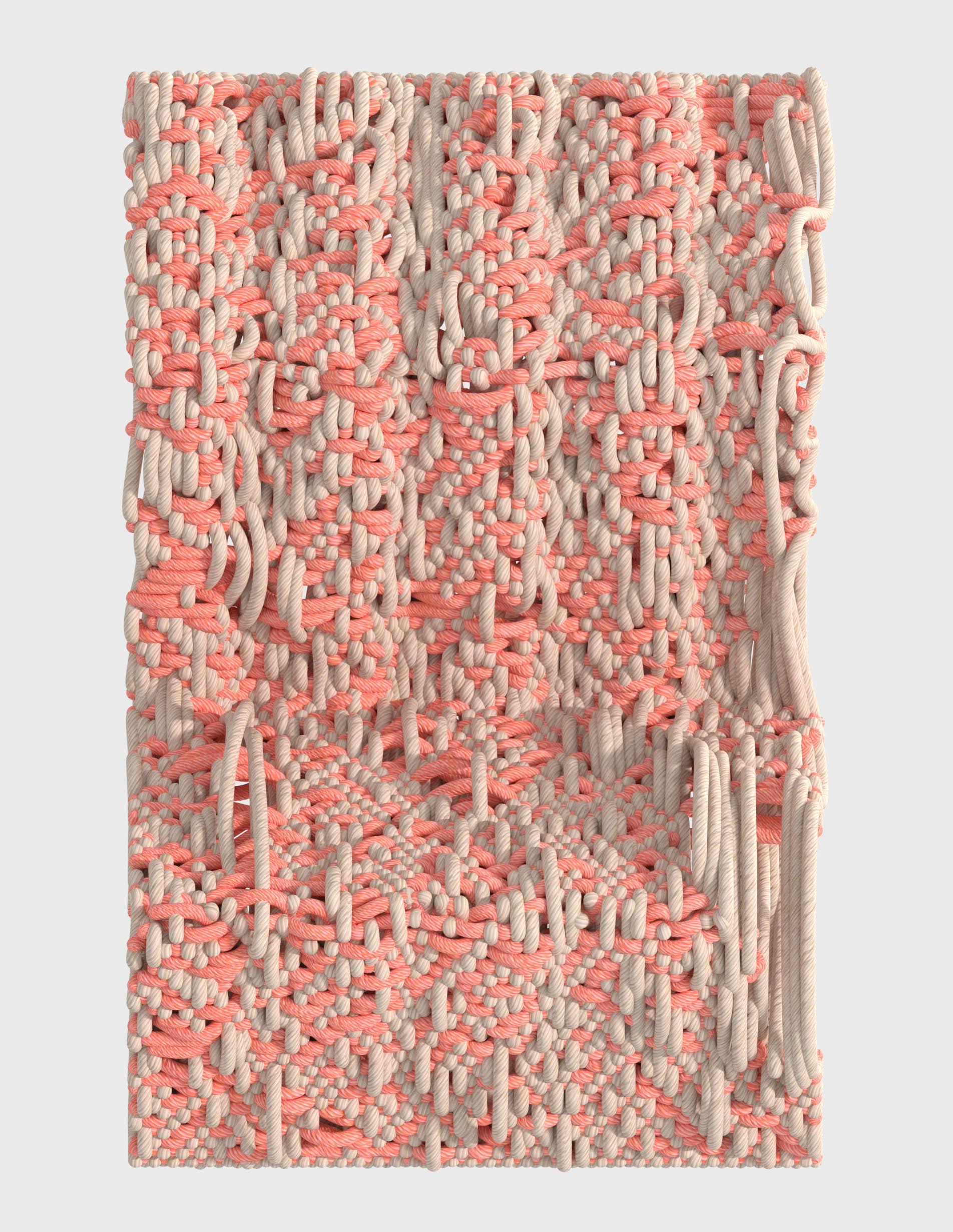 Compositing base weaving structures is a way to build articulation. Layering these markings begins to broaden their visual output and significance. An encrypted lan-