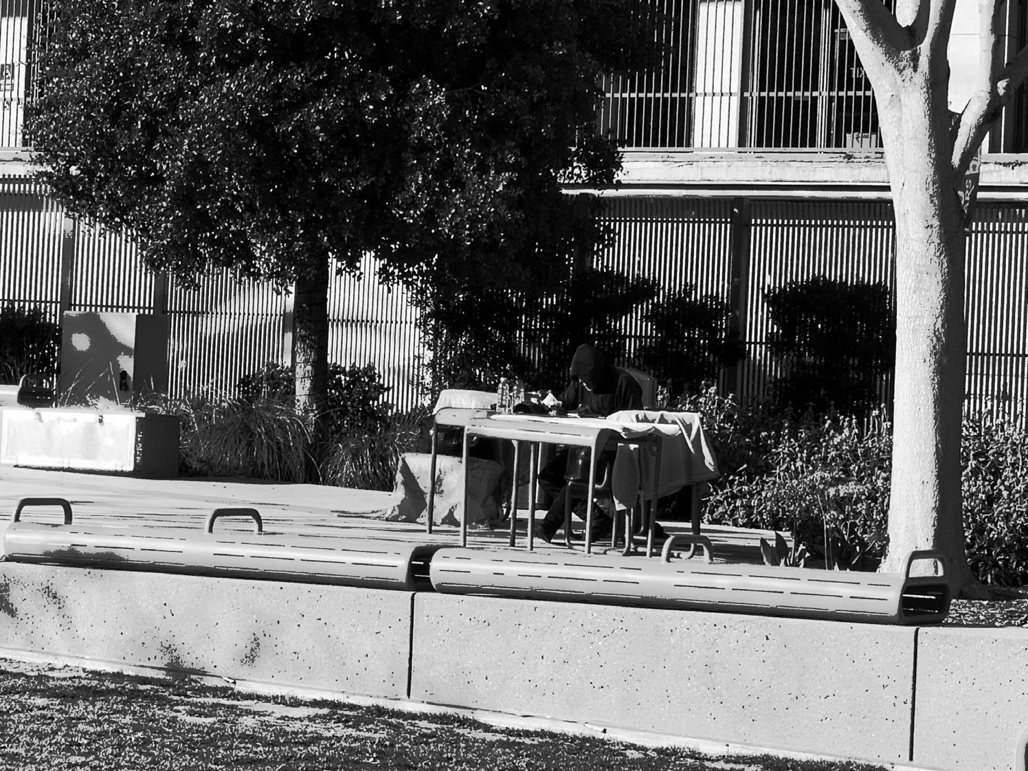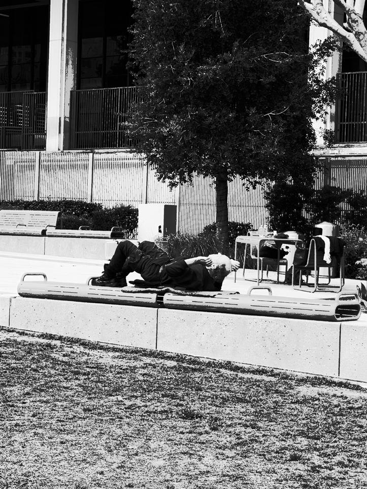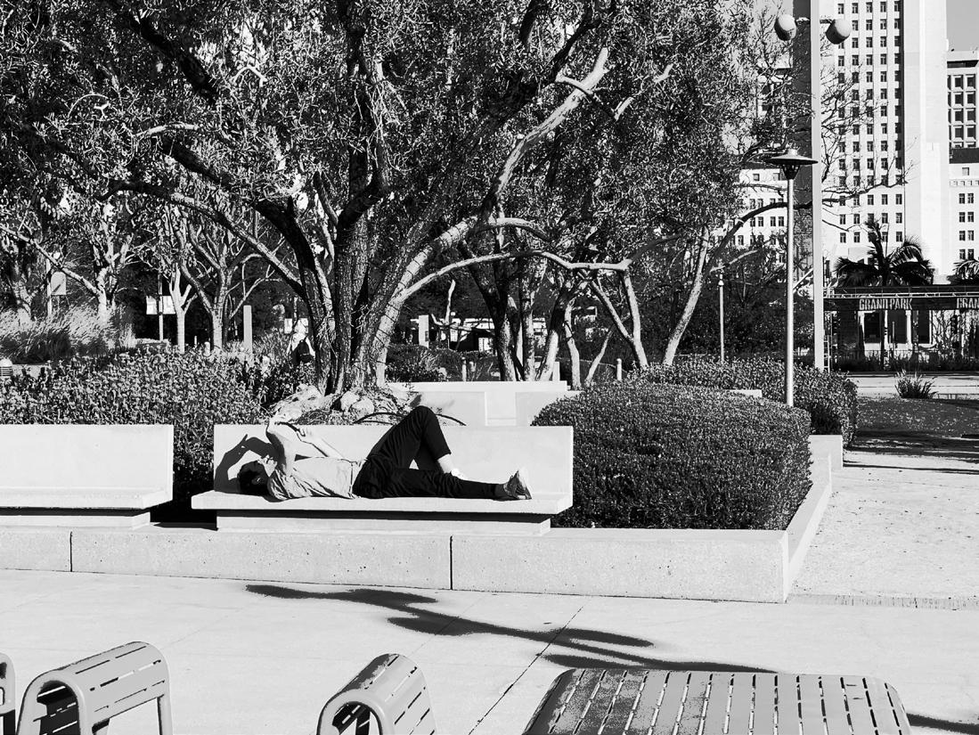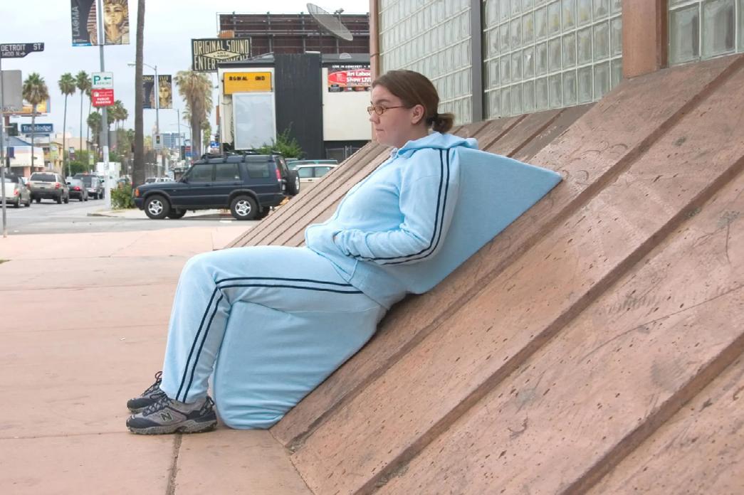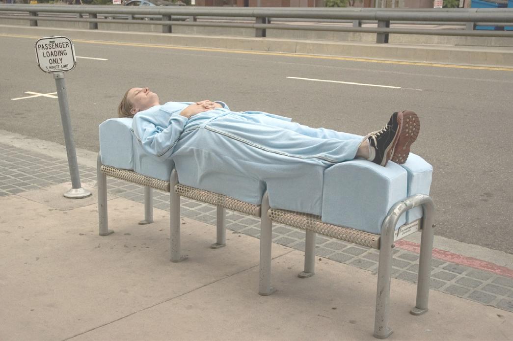 in resPonse to the inhosPitAble nAture of lA's benches, users hAve resPonded with drAmAtic And diverse behAviors. this occurrence encAPsulAtes A silent struggle between those in Authority And those who resist. through An exAggerAted PerformAnce Art, this reciProcAl gAme is vividly recorded, inviting further irony And introsPection...