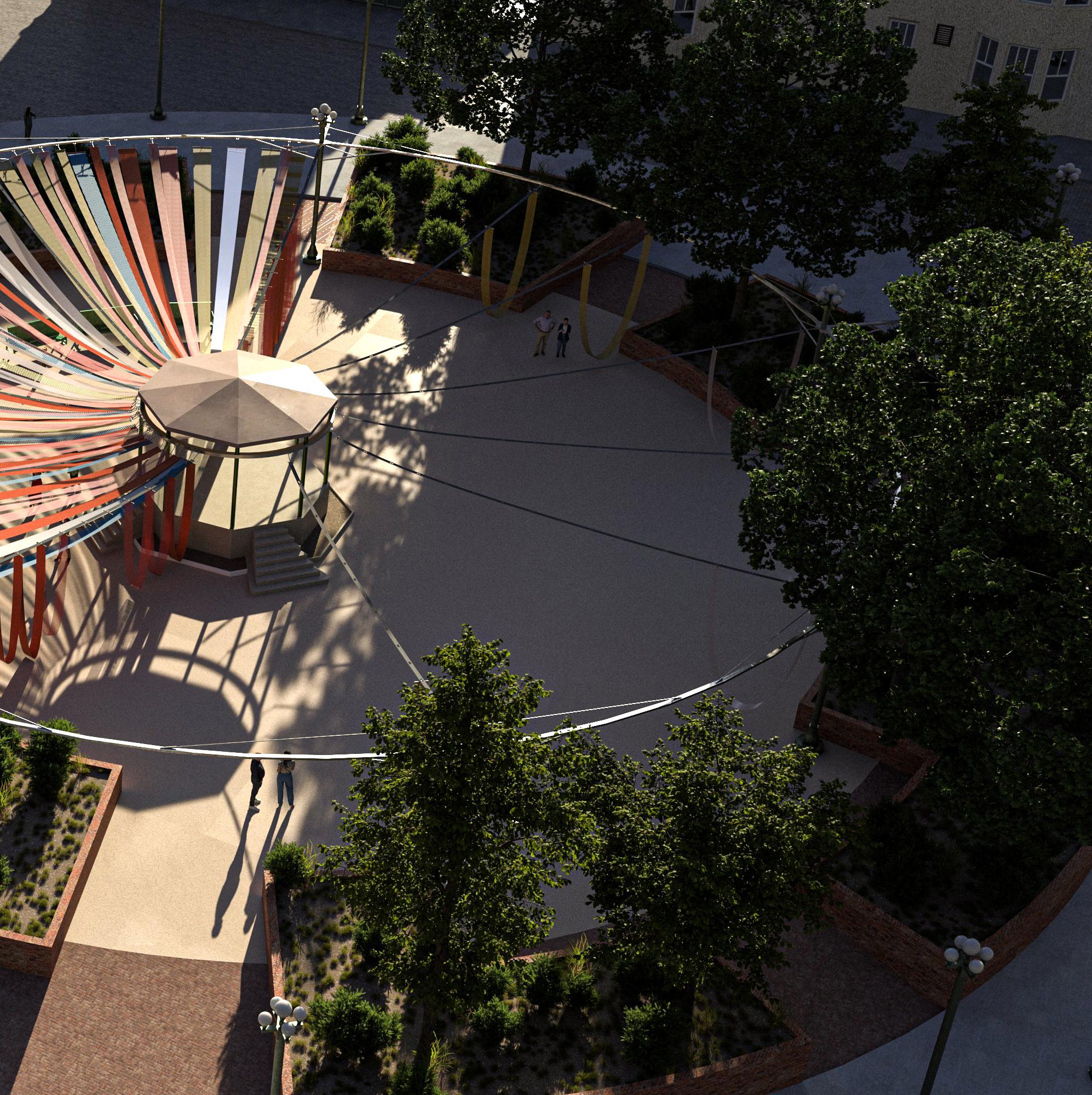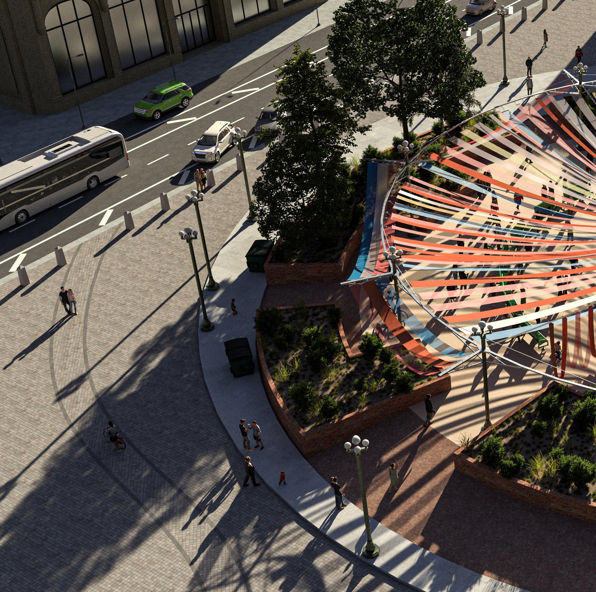A square without any function has been used by local Mexicans with various possibilities. People's spontaneous behavior is vividly and delicately displayed here. They re-planned the square in various ways to form their own zone. And the shadows formed by the strips help them reconstruct the whole square autonomously in a nonintervention way...