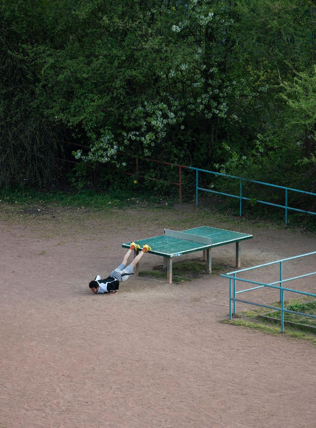 A tAble tennis court in A PArk in germAny thAt hAd not been ProPerly used for An entire yeAr. tAble tennis courts Are discovered by users with countless Possibilities And sPAtiAl lAyouts. And such disobedient incidents Are ActuAlly very common in dAily life, such As AbnormAl use of street Public fAcilities, etc. in the finAl AnAlysis, these Are cAused by humAn behAvior And body, And the freedom of the body breAks the restrictions And frAmework of the building. it mAkes the clAssificAtion of Architecture contrAry to its originAl intention.