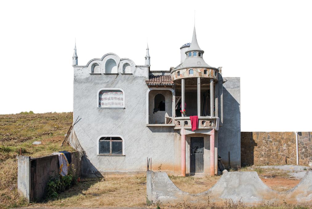 The picture above is the scene when Guinea moved. The line between clothing and shelter is as blurred as that between a raincoat and a small tent. An empty basket can be used as a cover that snaps on to the structure, and a portable roof can also be used as an umbrella and vice versa.