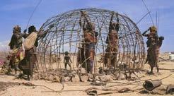 A contrasting frame of understanding is the demountable logic of the tent. Made of skeletons and membranes, a tent reappears through various cycles of reconstruction. While producing spaces that shift in time, the maintenance and rituals inherent to constructing a tent push a building towards collective performance. The performative logic of the tent is clearly visible in its subcategory of pneumatic structures, which also provide a collective space made of a lightweight tectonic system, assembled through a construction process that is more tangible. California's desert has been the annual site of many temporary gathering events. Famous examples include the Coachella Music and Art Festival, where facilities, lawns and temporary structures of a polo club enable annual gathering of thousands of festival-goers, performers, and event employees. Contrastingly, a small and remote gathering is Andrea Zittle's A-Z West project where 8 artists share a living space, kitchen and bathroom in a remote desert land while sleeping in individual pod-like shelters. Llano del Rio commune can