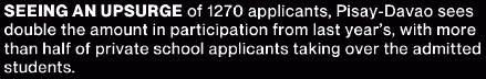 SEEING AN UPSURGE of 1270 applicants, Pisay-Davao sees double the amount in participation from last year’s, with more than half of private school applicants taking over the admitted students.