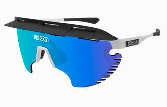 THE ALL NEW AEROSHADE FEATURES A FRAME EQUIPPED WITH SCICON SPORTS HORIZON ADAPT™ MECHANISM, THE WORLD’S FIRST HEIGHT- ADJUSTABLE NOSE PAD ALLOWING RIDERS TO TAILOR THE FIELD OF VISION DEPENDING ON THEIR PREFERRED RIDING POSITION. WITH THE SIMPLE PUSH OR PULL OF THE HORIZON ADAPT™ NOSEPIECE EACH RIDER IS ABLE TO ADAPT THE POSITION OF THE LENSALLOWING THE RIDER TO FULLY FOCUS ON PERFORMANCE WITH AN UNOBSTRUCTED VIEW ON THE ROAD. THE AEROSHADE FEATURES A FRAME DESIGN THAT FURTHER INCREASES THE FIELD OF VISION USING THE PANORAMA ARCH™.