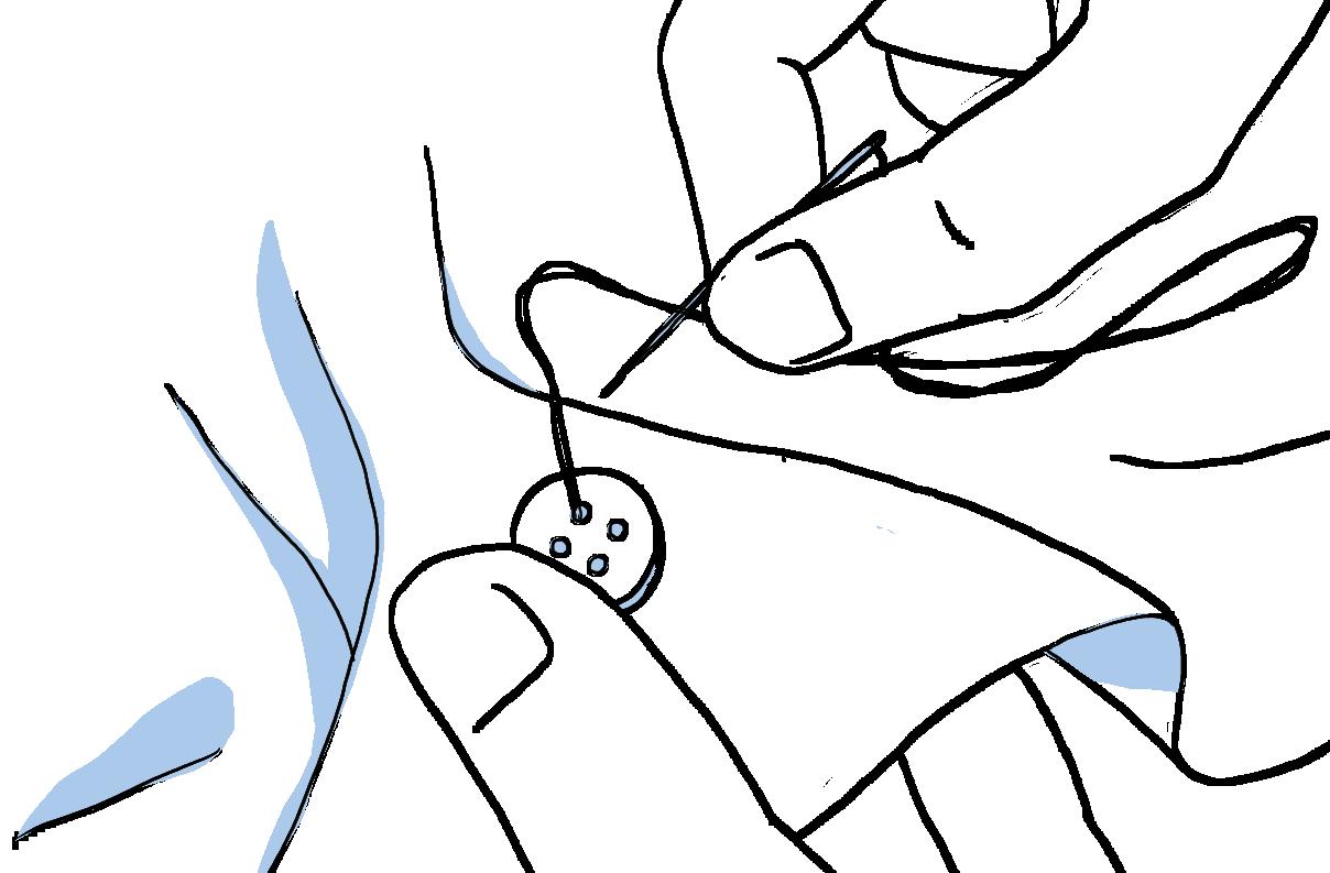 Step 7: Take the thread over to one of the hydrogen buttons and pass it through the cloth right next to the button. This is your bond!