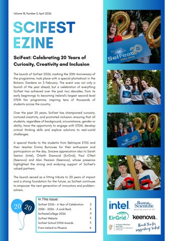 SciFest is a STEM fair programme celebrating student engagement in science, technology, engineering and maths. The aim of SciFest is to ensure every second-level student in Ireland irrespective of their ability, gender, background or circumstance has the opportunity to participate in a STEM fair thus lowering barriers and bringing the talents of diverse populations into the innovation pipeline. SciFest operates across the whole island of Ireland, throughout the entire school year and, being locally and regionally based and free-to-enter, it is highly inclusive and accessible. A SciFest STEM fair typically includes project exhibitions, judging, keynote speakers, an awards ceremony, and networking opportunities. In 2025 around 15,000 second-level students participated in SciFest. SciFest is affiliated to the Regeneron International Science and Engineering Fair (ISEF) and each year winners fron the National Final compete at ISEF. RCN 20081270