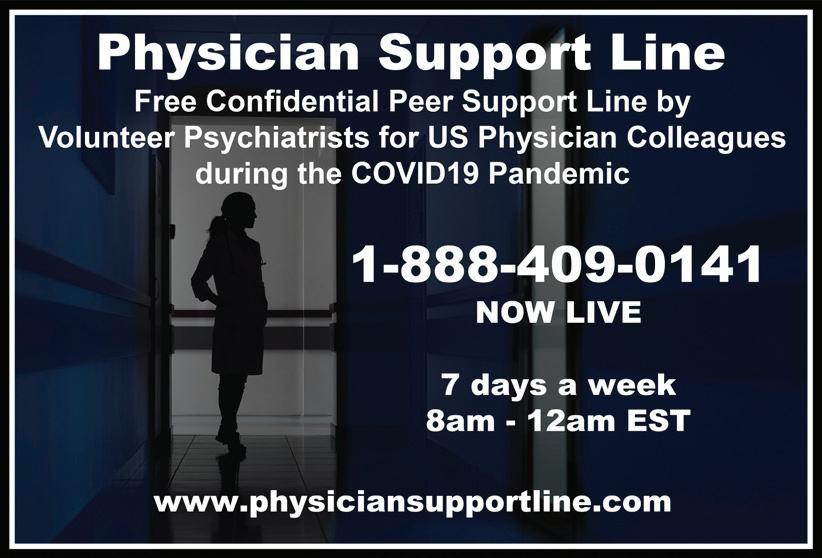 I confirmed they are open to all physicians, residents and medical students from 8 a.m.-12 a.m. seven days a week except for federal holidays. They have volunteer psychiatrists staffing the phone lines. They do not report to any organizations and is a confidential service.