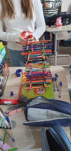Elevii simulează lecții, inventează activități (ex. confecționarea unei coroane la clasă, desenarea etapelor unui exercițiu pe tablă)