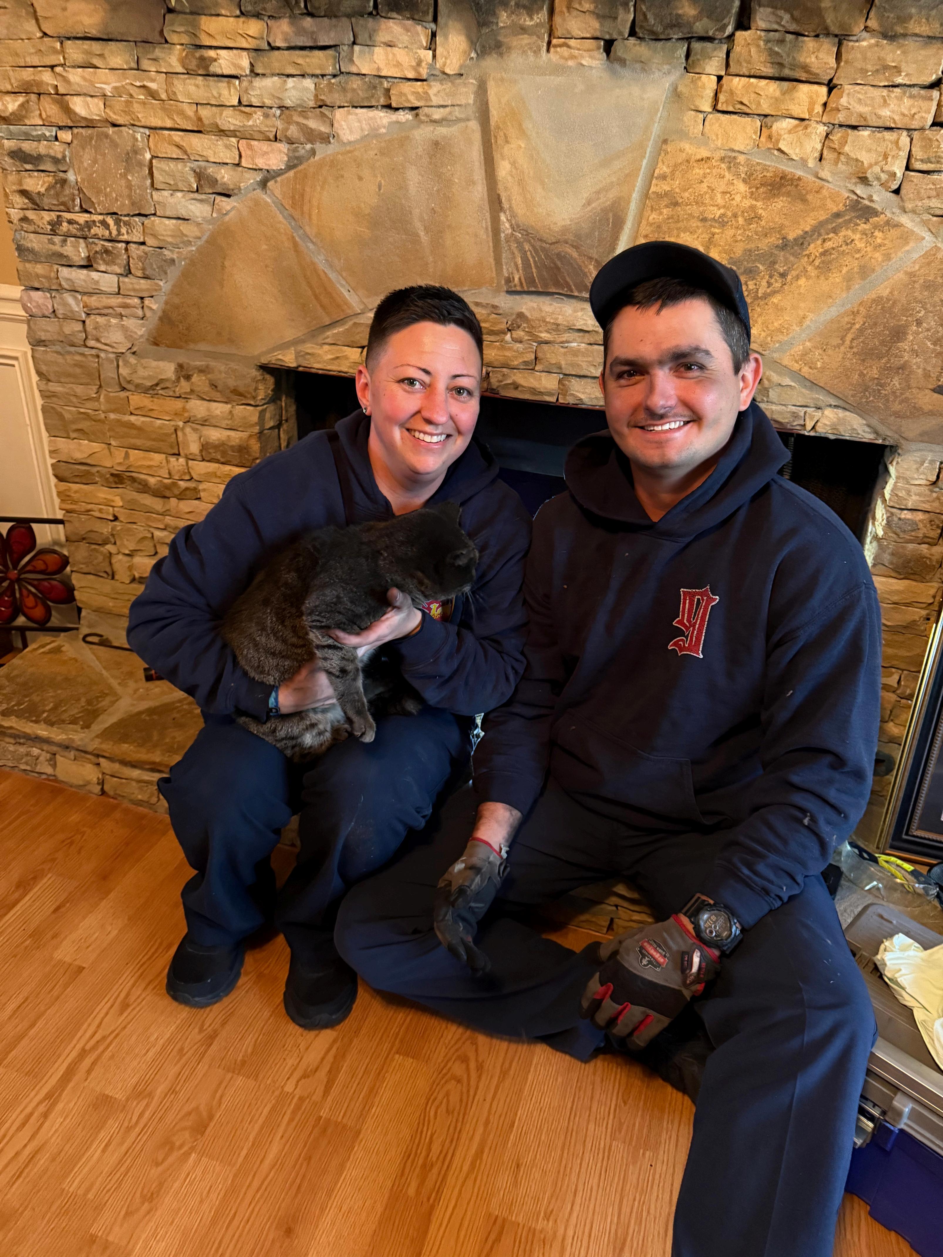 Recognizing the urgency and the stress on both the homeowner and the frightened animal Jessica and Ryan took the time to carefully assess the situation and develop a safe plan of action With patience, teamwork, and a clear commitment to doing things the right way, they worked methodically to access the chimney and safely free the cat without causing harm to the animal or the home