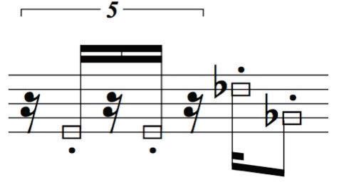 High and Low Bongos High Tom-tom Floor Tom Large Sizzle Cymbal Large Tam-tam Brake Drum Castanets (hand) 4 Bossed Gongs (Ab4, Bb4, Db5, Gb5)