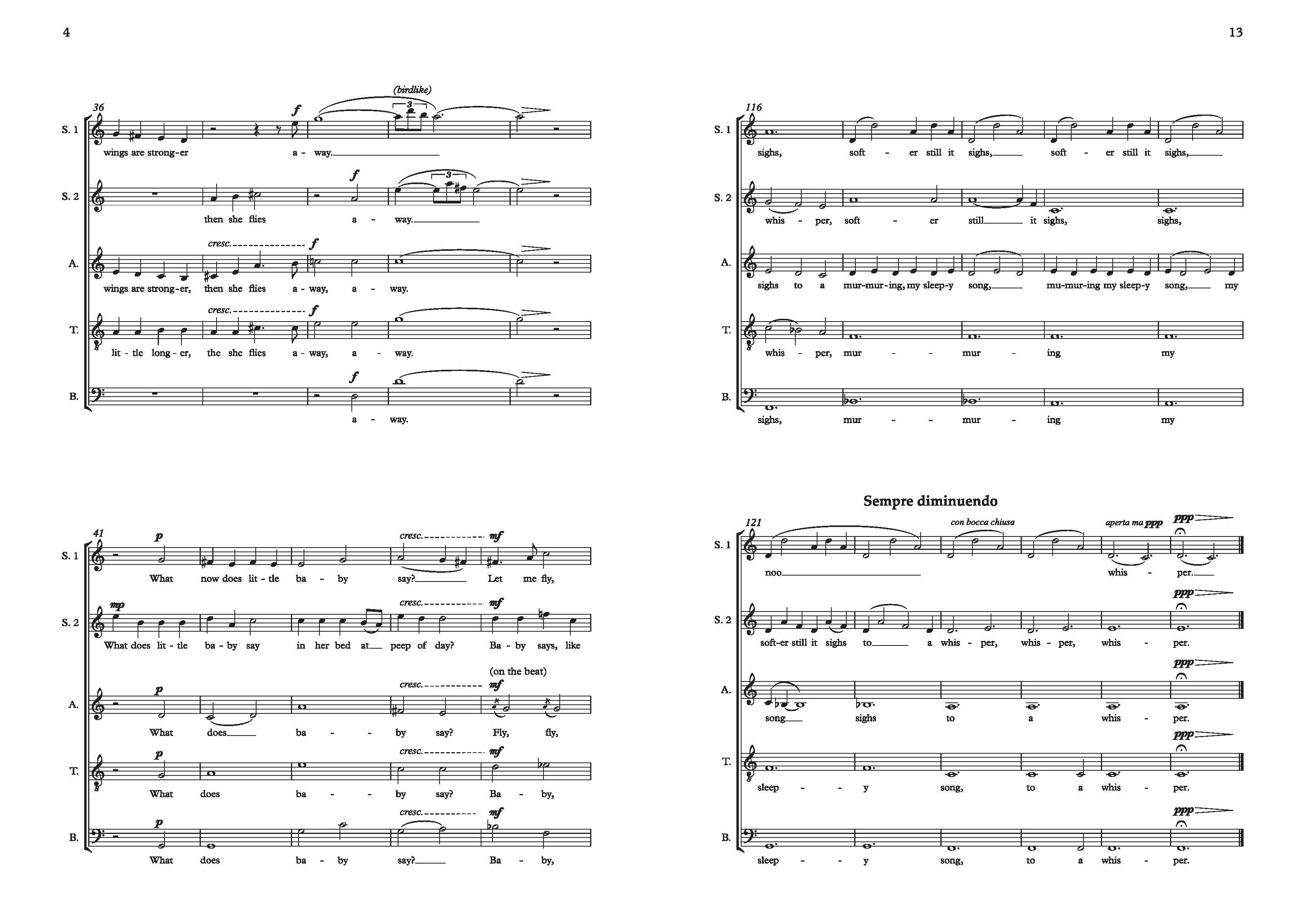 ° ¢ Copyright©2022byEditionWilhelmHansenAS,Copenhagen Soprano1 Soprano2 Alto Tenor Bass Ah p h=ca.66 Ah mf p Ah mf p Ah mf p Ah mf p S1 Whatdoeslittle - birdie - say inhernestat peepofday? Letmeflysays little - birdie,Semplice(likeafolksong) 5 S1 Mo-ther, let me fly a-way! Bir-die rest a lit-tle long-er, 11 S1 till thelit-tle wings arestrong-er! So she rests a lit-tle long-er, rit. atempo 15 2 2 2 2 2 2 2 2 2 2 & ∑ ∑ ten U forfivesolovoices,orpossibly,achoir Music:BoHolten basedonTwoChildrenSongsbyFrederickDelius Lyrics:Alfred,LordTennyson THEDELIANMADRIGAL & ∑ () > U & () > U & ‹ () > U ? ∑ () > U & & & , œ œ œœ˙ œ ˙ œ J ‰ Œ #˙ w ˙ ‰ ‰ Œ ˙™ w w ˙™ ‰ ‰ w w w ˙ ‰ ‰ w w ˙™ ‰ ‰ œ œœœ œ œ ˙ œœœœœœœ˙ œœ œ œ œœ œ œ bœ œ œ œ #œ œ J ˙ œ œ œ™ œ j œ œ œ œ #œ™ œ J #œ œ œ nœ œ œ œ œ œ™ œ j œ œ œ œ