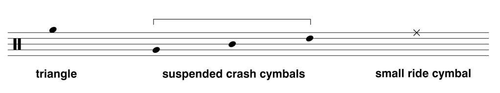 Piccolo Flute 2 Oboes 2 Clarinets in Bb 2 Bassoons 4 Horns in F 2 Trumpets in C 2 Tenor Trombones 1 Bass Trombone Tuba Timpani Percussion 1 vibraphone, glockenspiel Percussion 2 3 thin crash cymbals (suspended), small ride cymbal, triangle, wind chimes