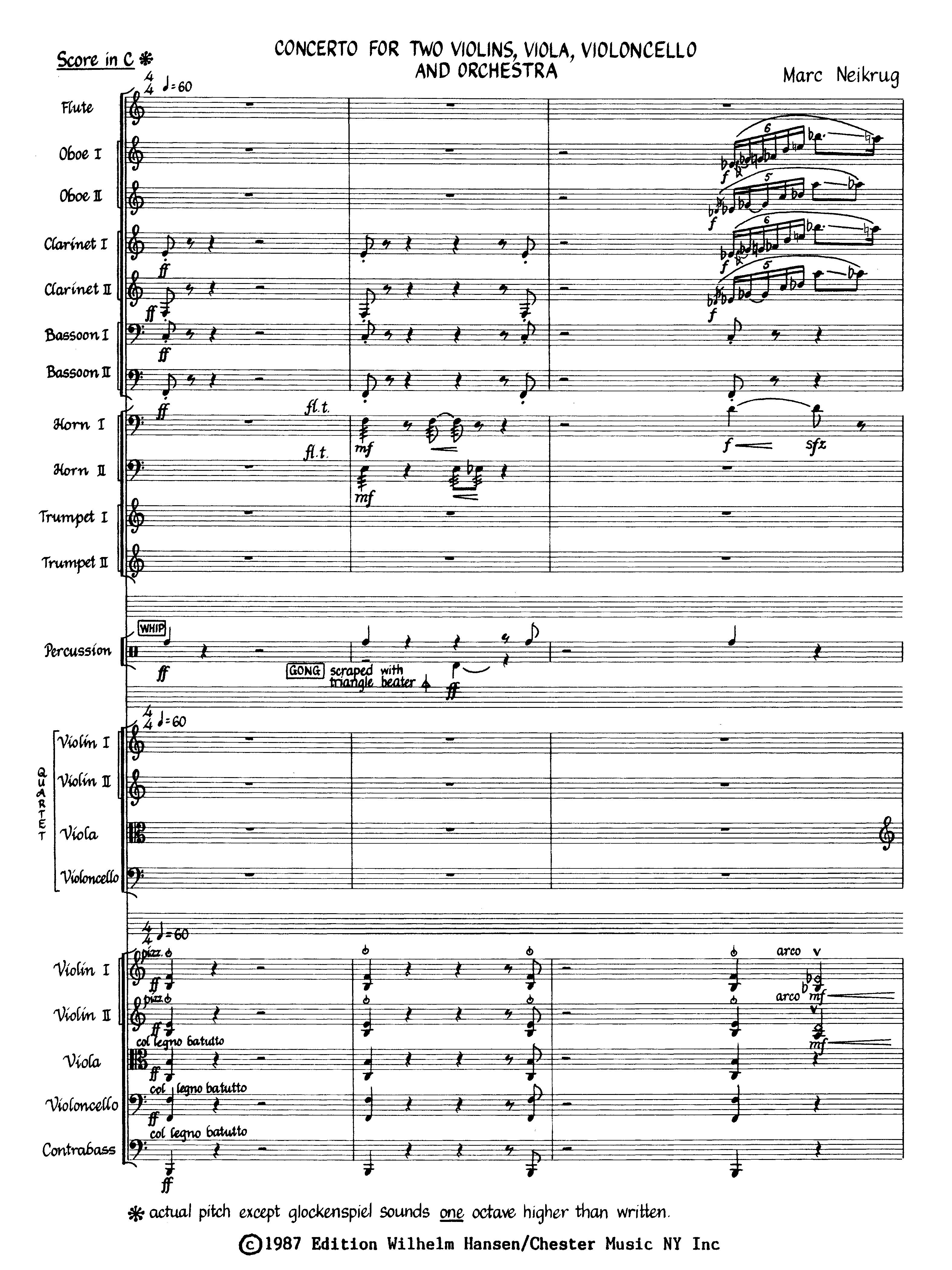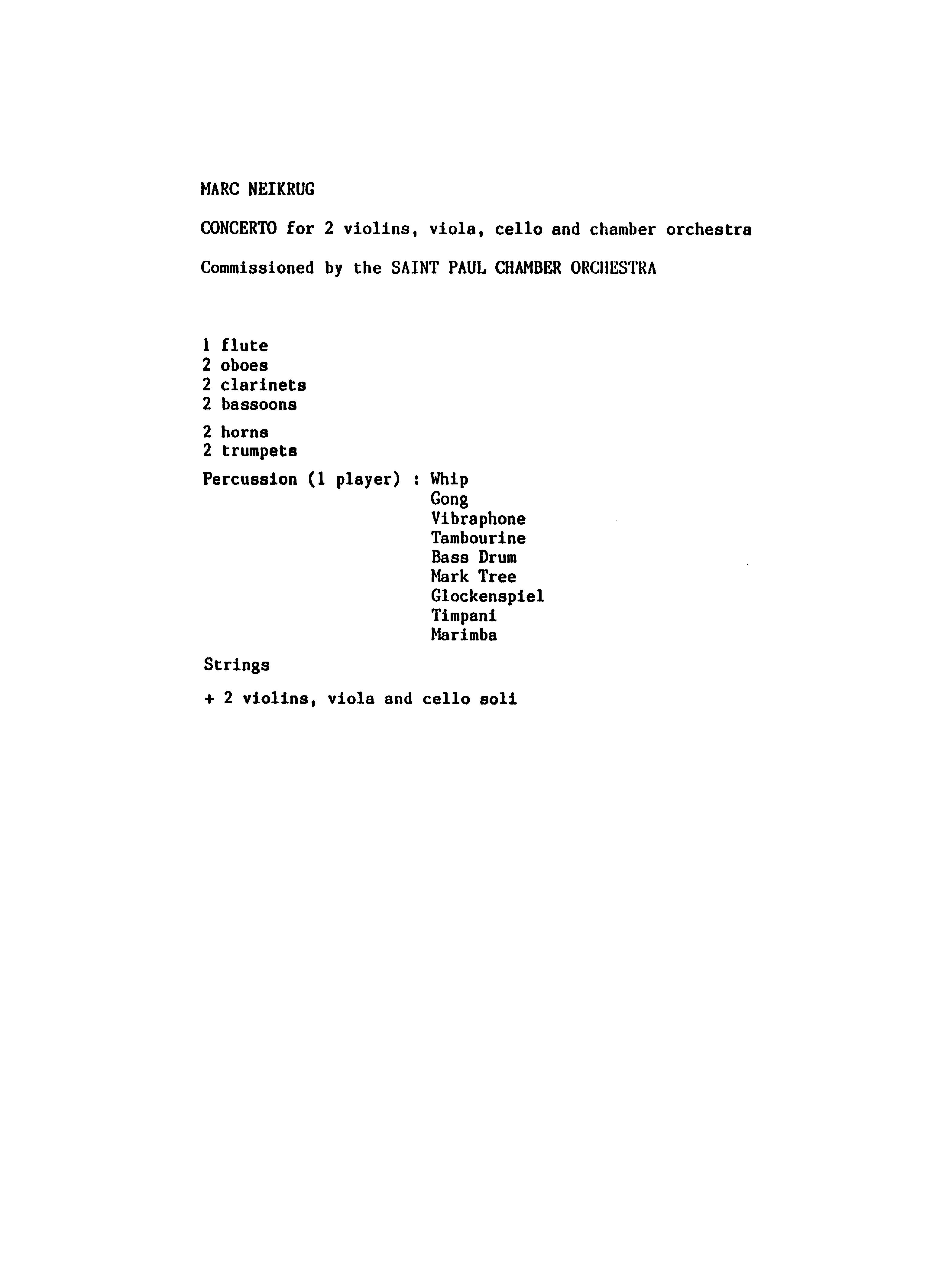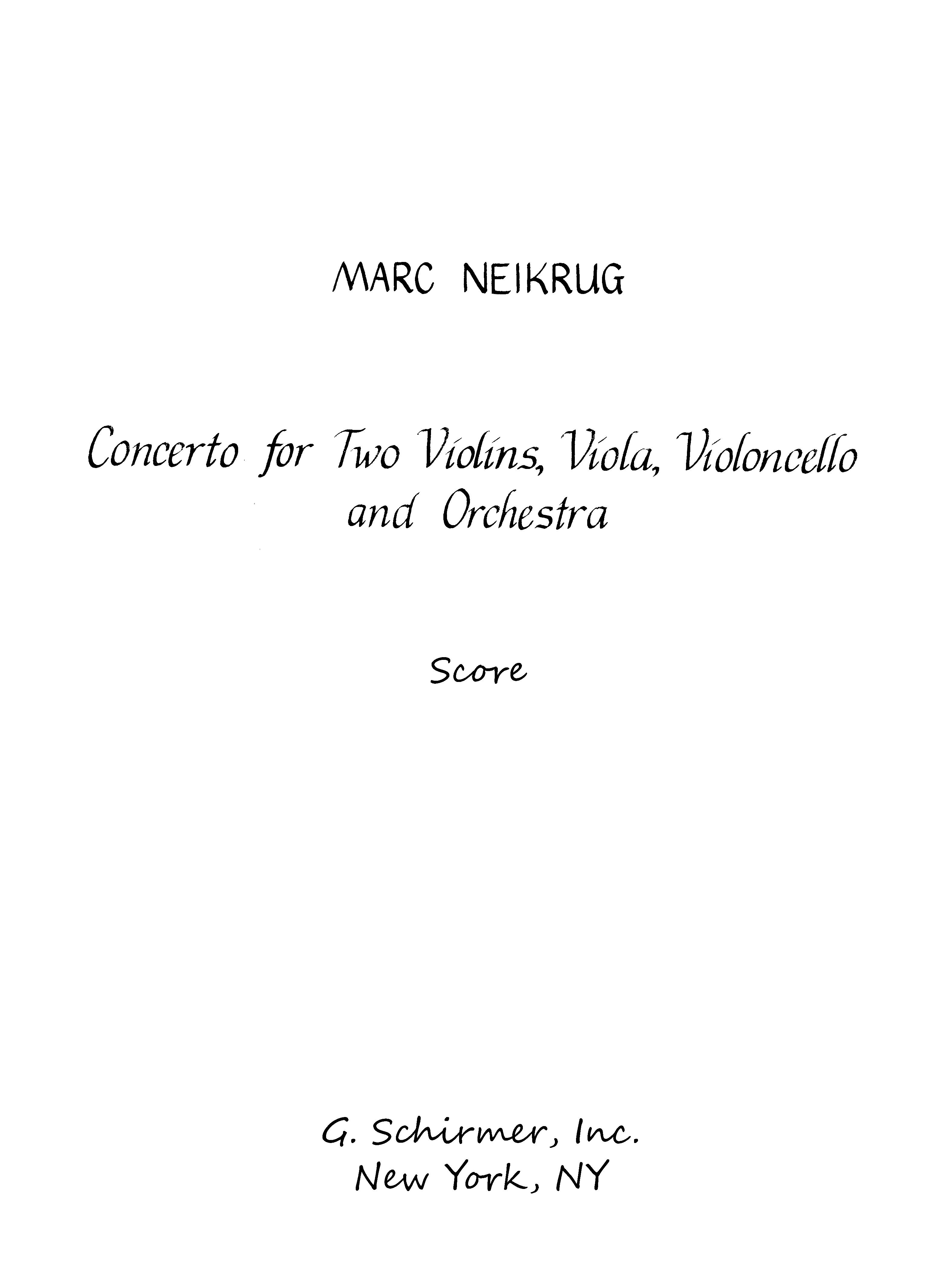 Neikrug CONCERTO FOR STRING QUARTET ORCHESTRA