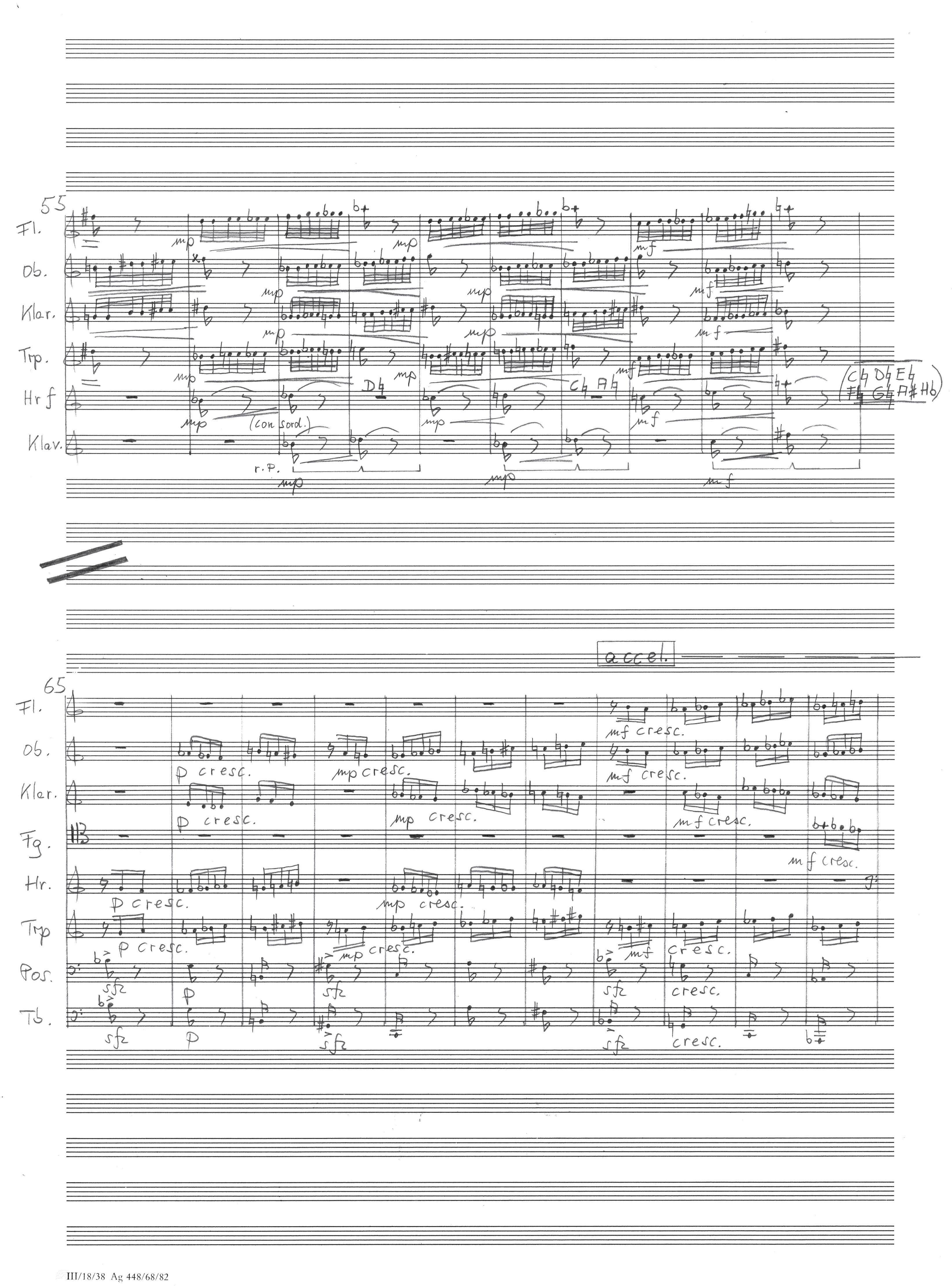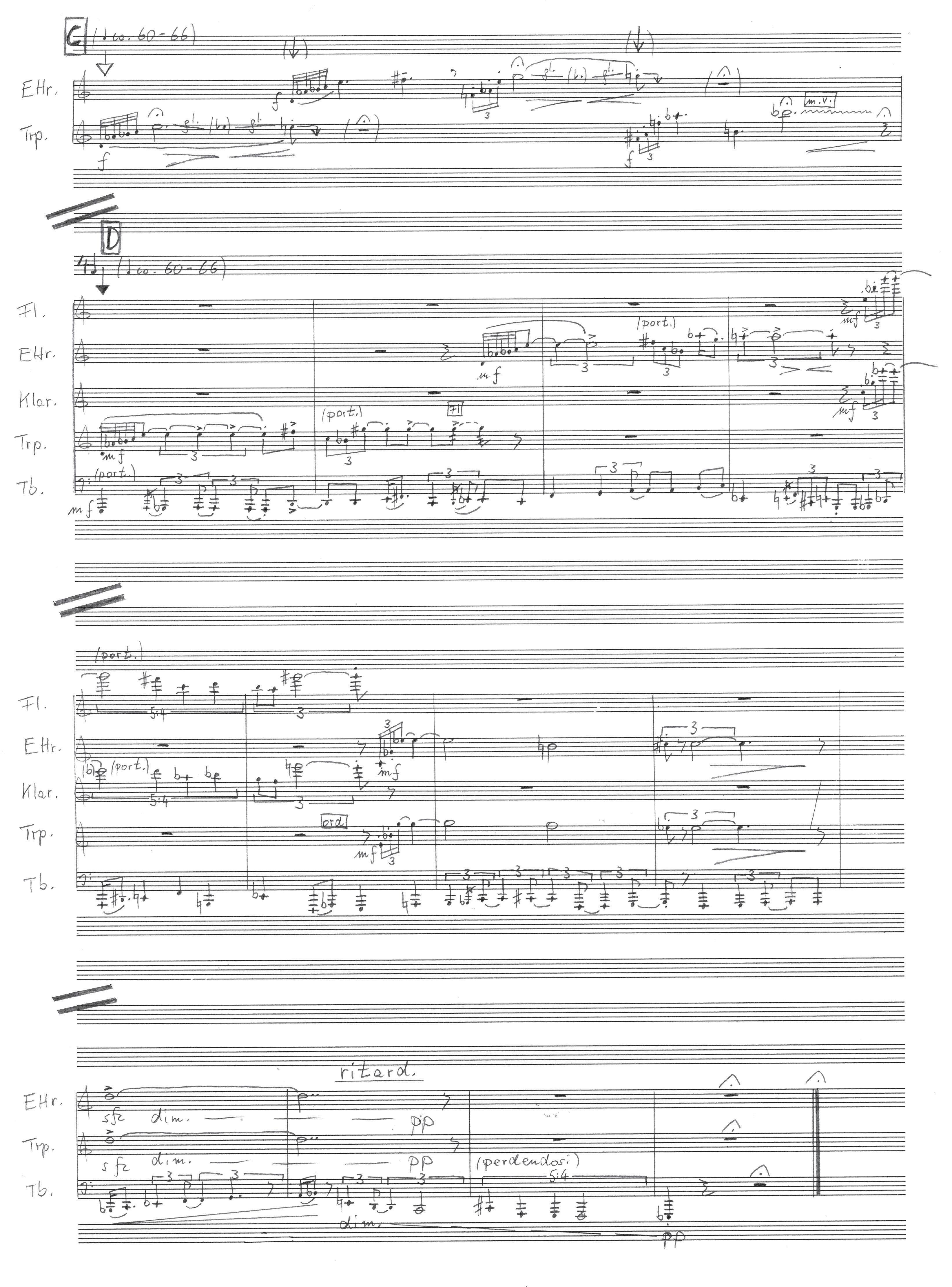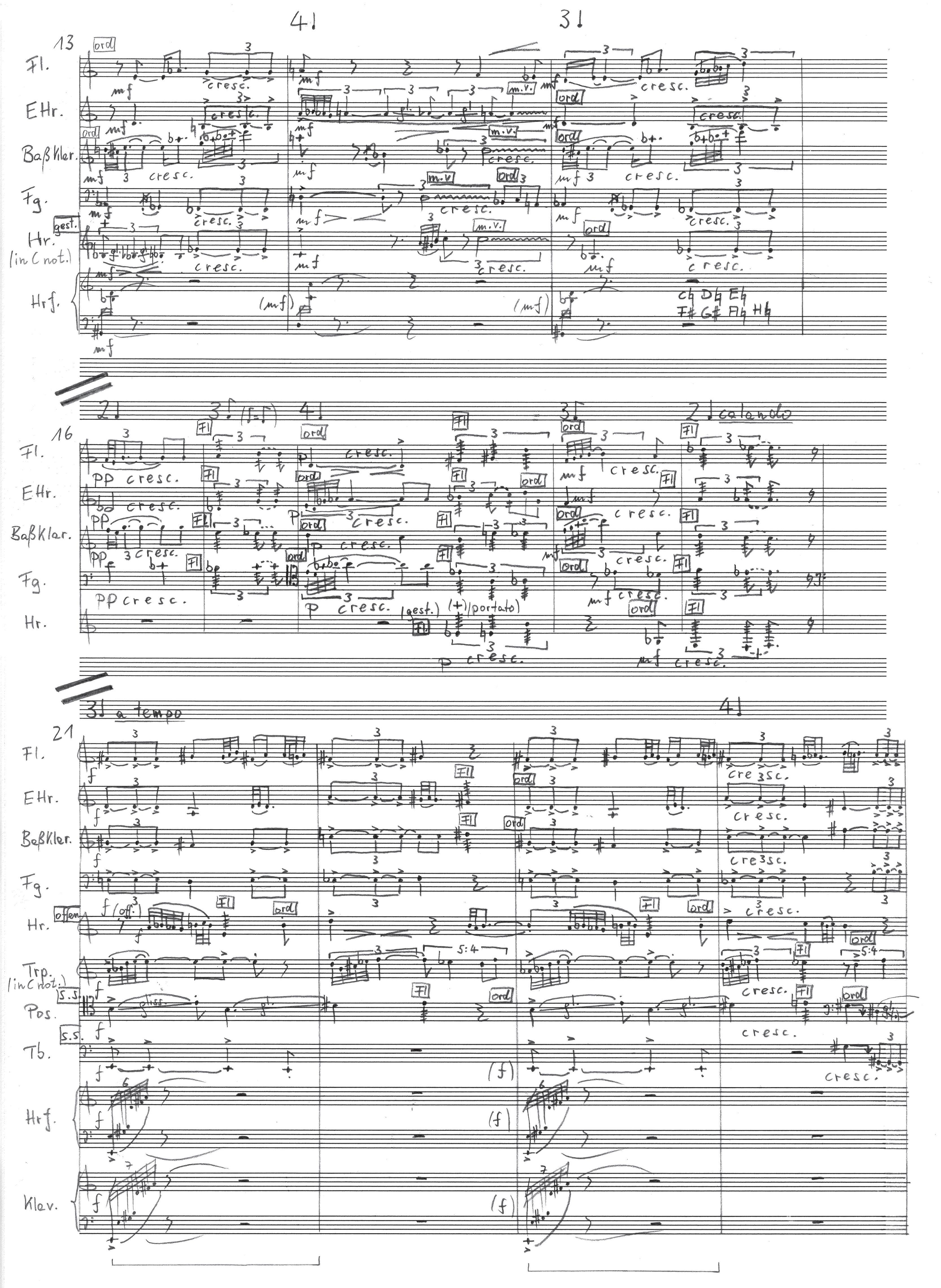 Die Zeit ist ein Fluß ohne Ufer (für 4 Holzbläser, 4 Blechbläser, Harfe, Klavier) wurde im September 1987 in Boston/USA durch das Ensemble ALEA III uraufgeführt und erhielt im selben Jahr unter 400 Einsendungen aus 28 Ländern den 1. Preis bei der ALEA III Kucyna International Composition Competition. 1990 brachte es die London Sinfonietta zur britischen Erstaufführung.
