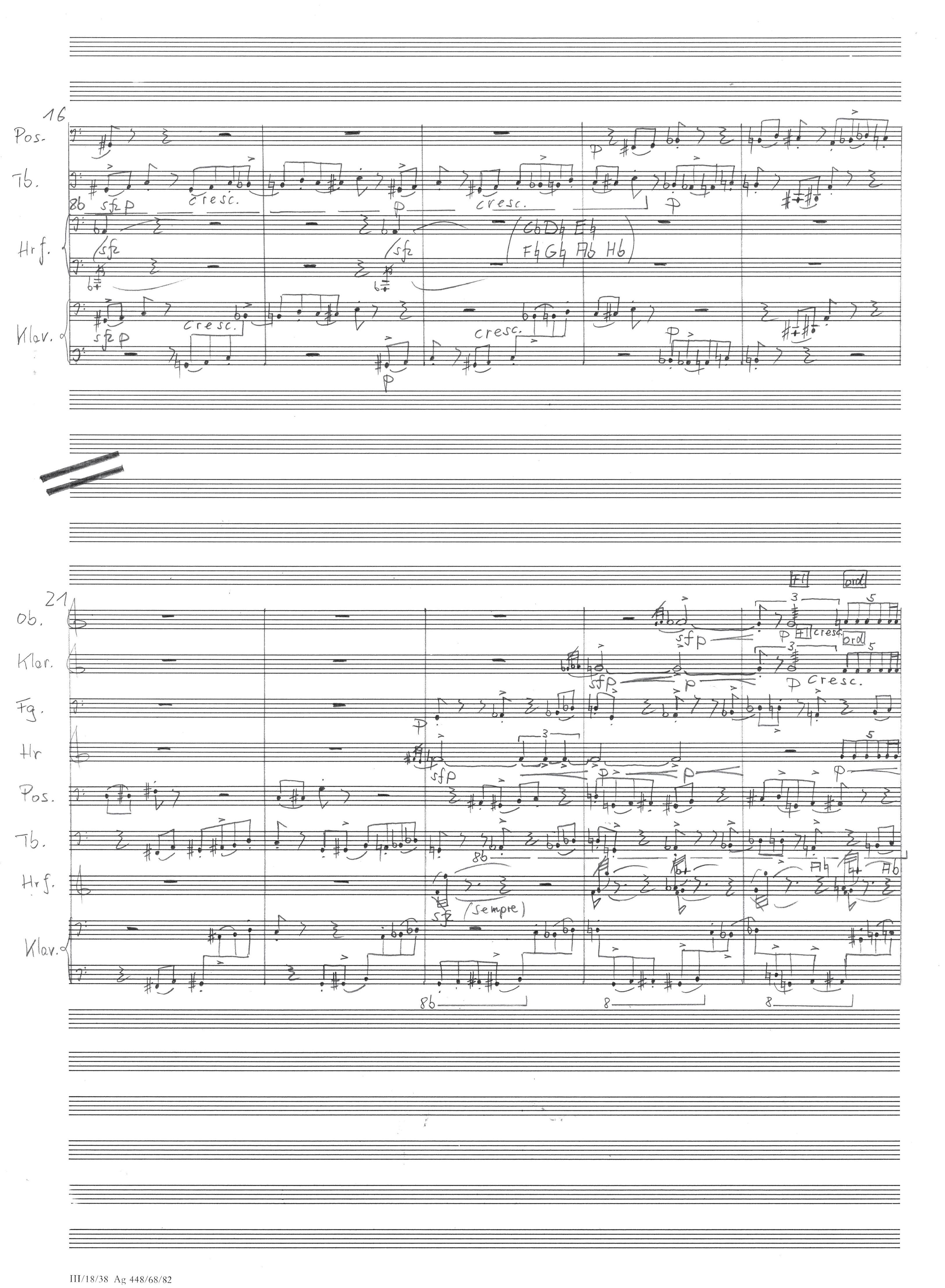 Dieser erste „Chagall-Block“ setzt sich zwar intensiv mit der Formen-, Farben- und Gedankenwelt von Marc Chagall auseinander, soll jedoch keine illustrative Musik sein. Die sechs kurzen Stücke dieser Komposition sind eigenständige musikalische Gebilde mit sehr klar konturierter unterschiedlicher Charakteristik.