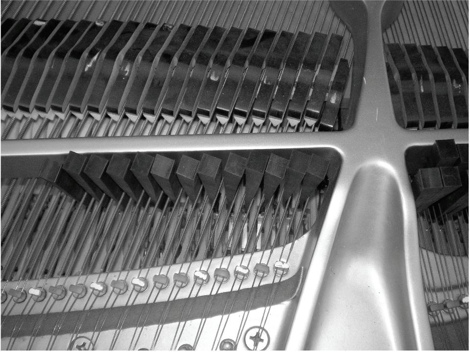 Der Tonraum von B1 bis b1 (Midicent: 3400 bis 7000) ist mit Kunststoffkeilen, wie sie von Klavierstimmern verwendet werden, prÀpariert (insgesamt 61 Keile). Zur Anbringung der Keile: s. Foto vorne in der Partitur.