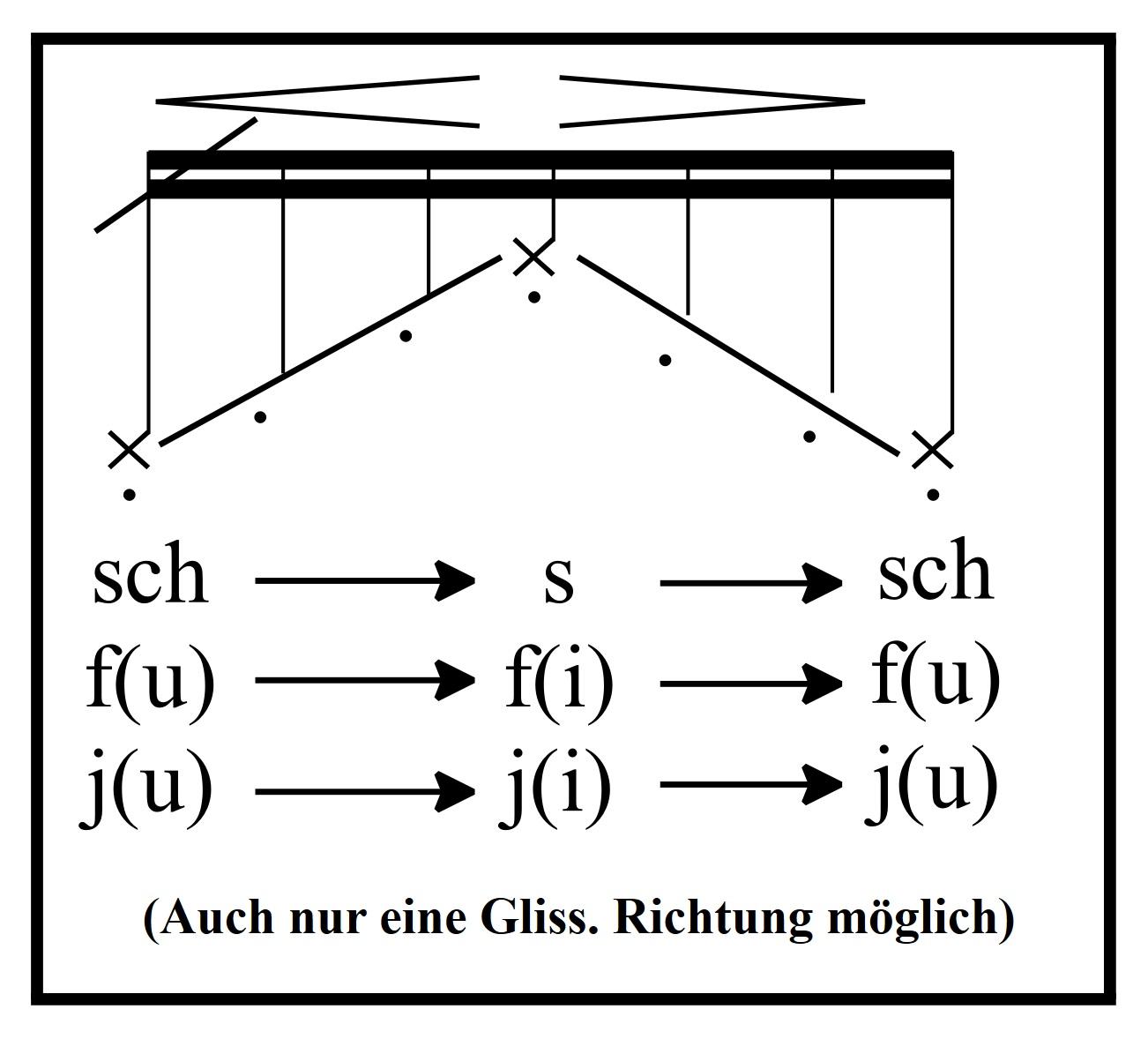 AußerdemsprechendieInterpret/innenauchlangeeinzelnestimmlose Konsonanten:s,sch,f,ch,rundj(jistderspanischenPhonetikentnommen undentsprichtdaschindoch).DasVokalinKlammergibtdiePositiondes Mundraums,diemandabeiannehmensollÜbergängezwischen verschiedenenMundraumpositionensowiezwischensundschwerdendurch einPfeilnotiert,zB