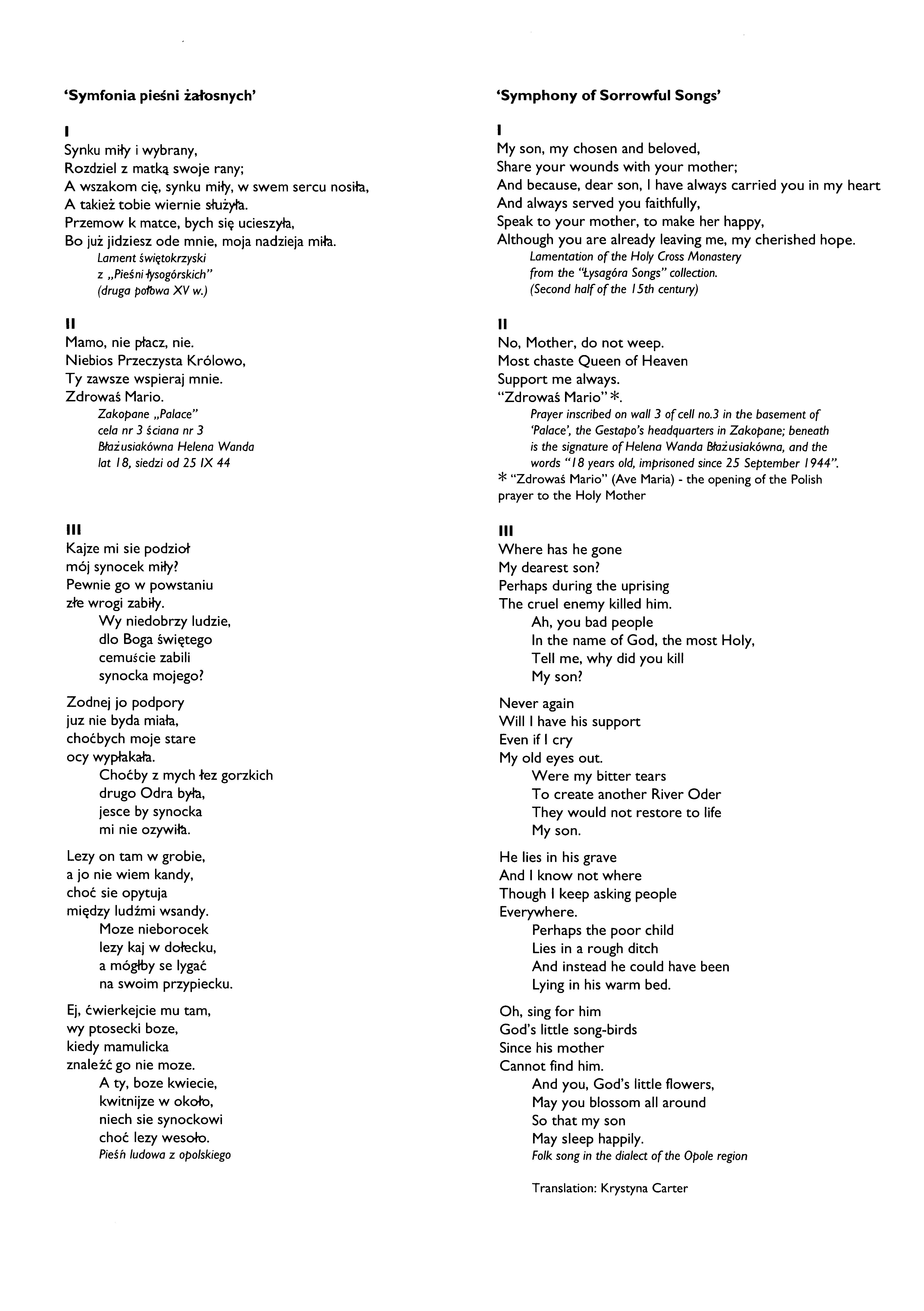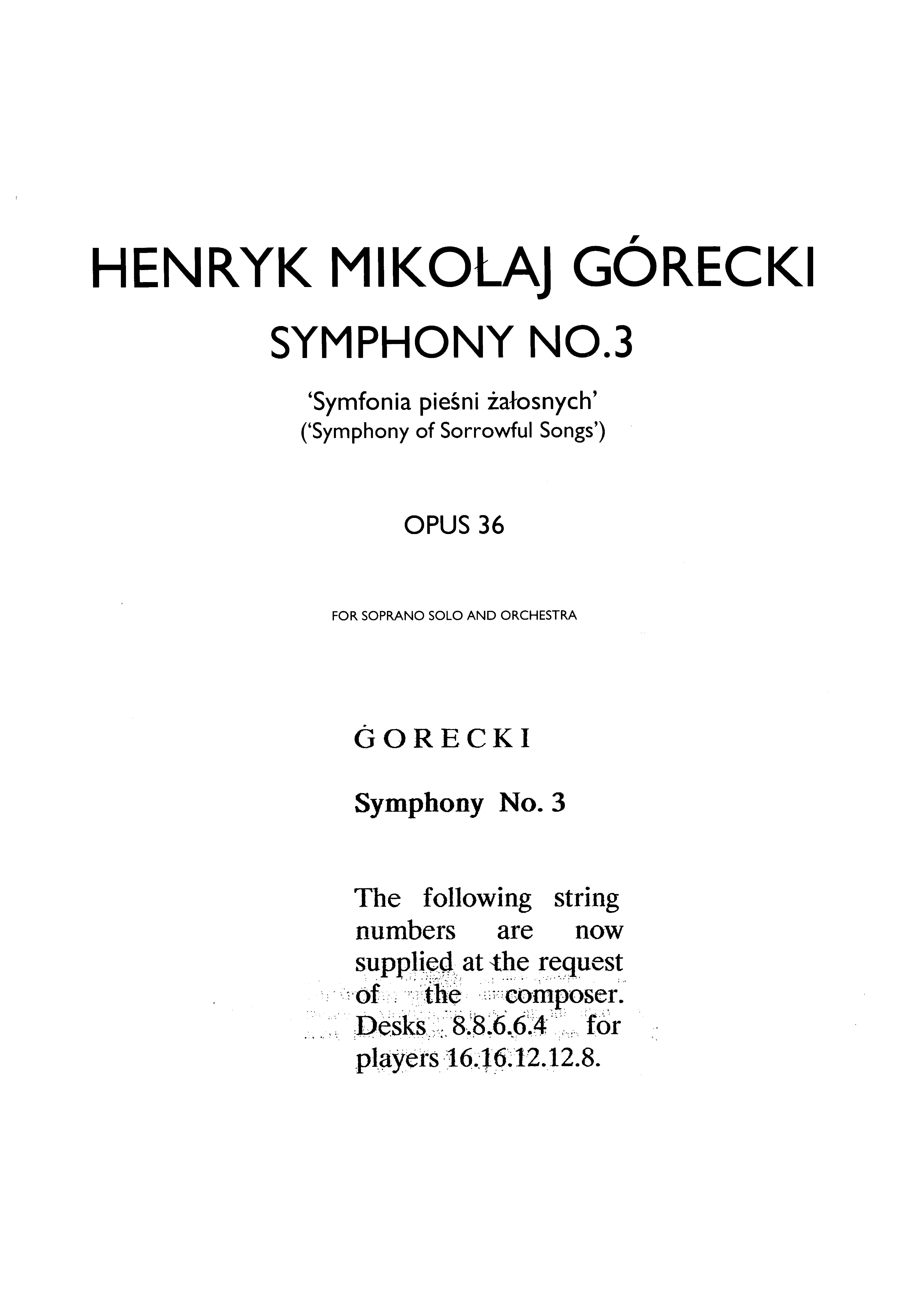 Górecki Symphony No.3 ‘Symphony of Sorrowful Songs’