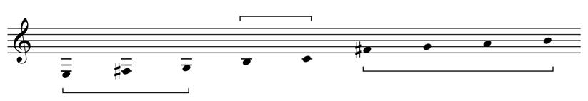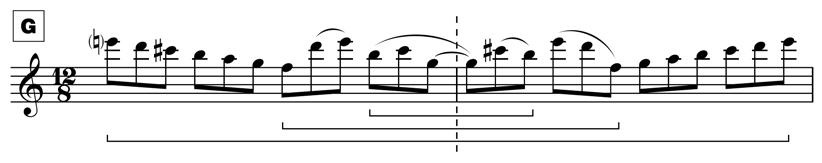 Letter G presents the first bar of the retrograde and then immediately presents that in reverse order to create a micro–palindrome: